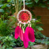 We found these vibrant colored dreamcatchers! Dreamcatchers are a wonderful symbol of the spider's web- the woven web that will catch unwanted dreams or thoughts.