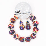This bracelet/earrings set is made exclusively by Sandy herself. Find the two special SB designs on one of the bracelet beads and one of the earring beads that indicate these items were made by Sandy!